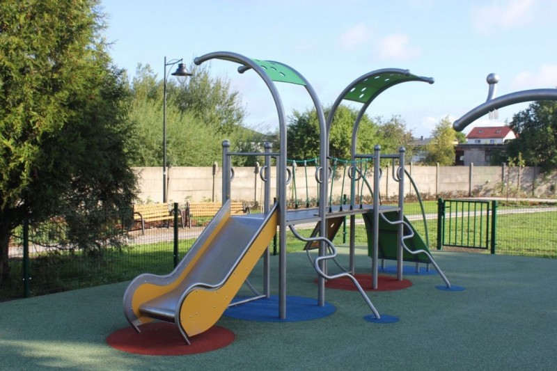 Rutsche und Rutschhandläufe aus Edelstahl. Sie können durch Kunststoff oder Laminat ersetzt werden.