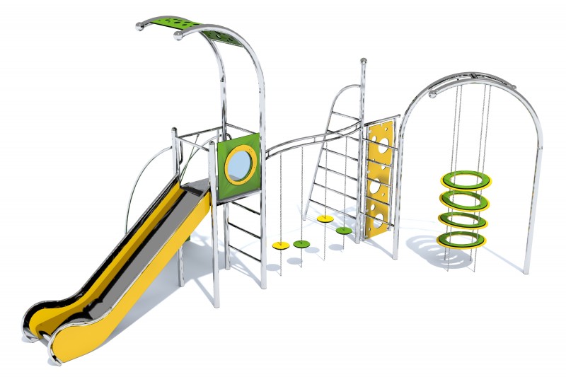 die Rutsche und Rutschhandläufe bestehen aus Edelstahl,