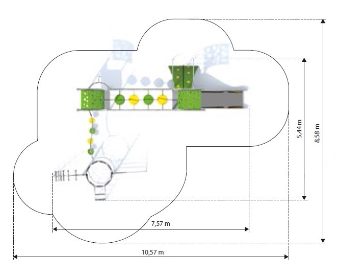 Das Dach, der Niedergang, die seitlichen Teile der Rutsche und die Kletterwand aus dreischichtigem, farbigem HDPE-Kunststoff mit einer Dicke von 15 mm.