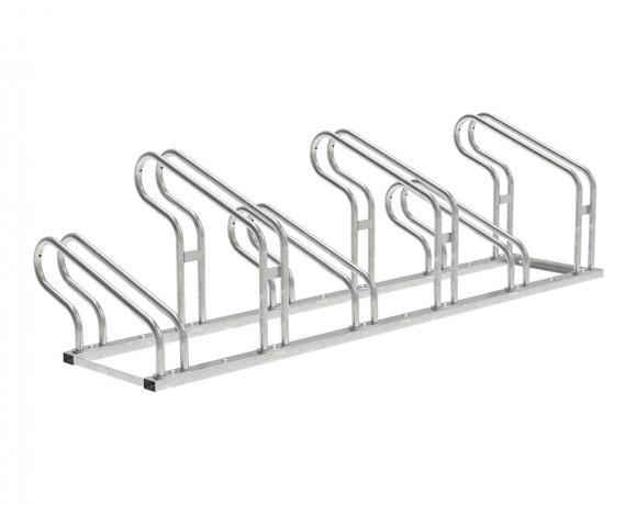 Ein Fahrradständer, der das Vorderrad sicher hält und dem Fahrrad vollkommene Stabilität bietet. Die zusätzlichen Bögen ermöglichen das Zusammenschließen von Rahmen und Rad, um auch bei der Sicherheit keine Abstriche zu machen.