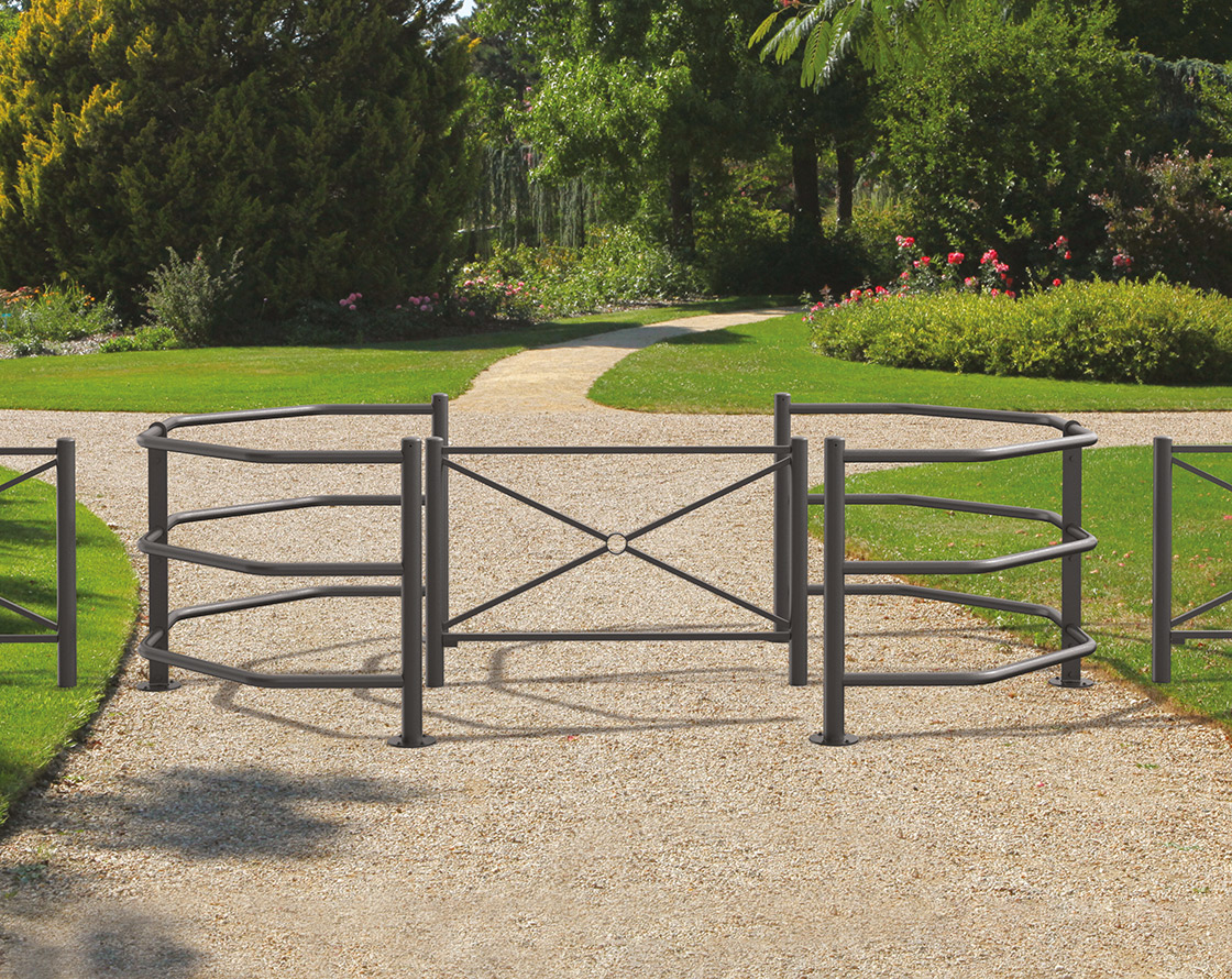 Die feste selektive Drehschranke dient dazu, den Zugang zu einem Bereich für Fußgänger und nicht motorisierte Fahrzeuge zu begrenzen. Sie wird zusammen mit einer Barriere installiert, um einen Verkehrsfluss zu schaffen.