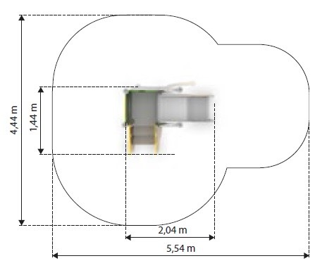 - Abmessungen der Sicherheitszone: 5,54 x 4,44 m