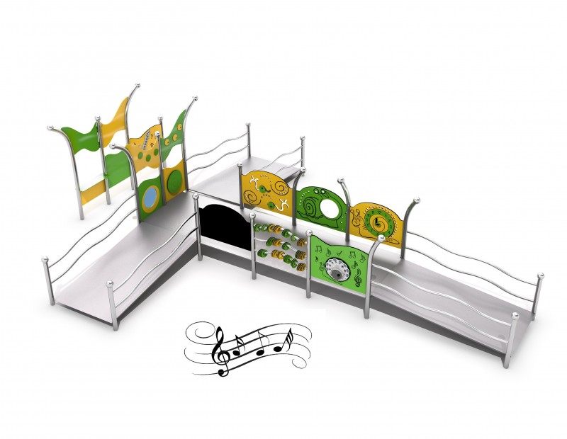 Die Gerätestruktur besteht aus Edelstahl AISI 304,Lehrtafeln mit Spieltafeln aus 15 mm HDPE-Kunststoff.
