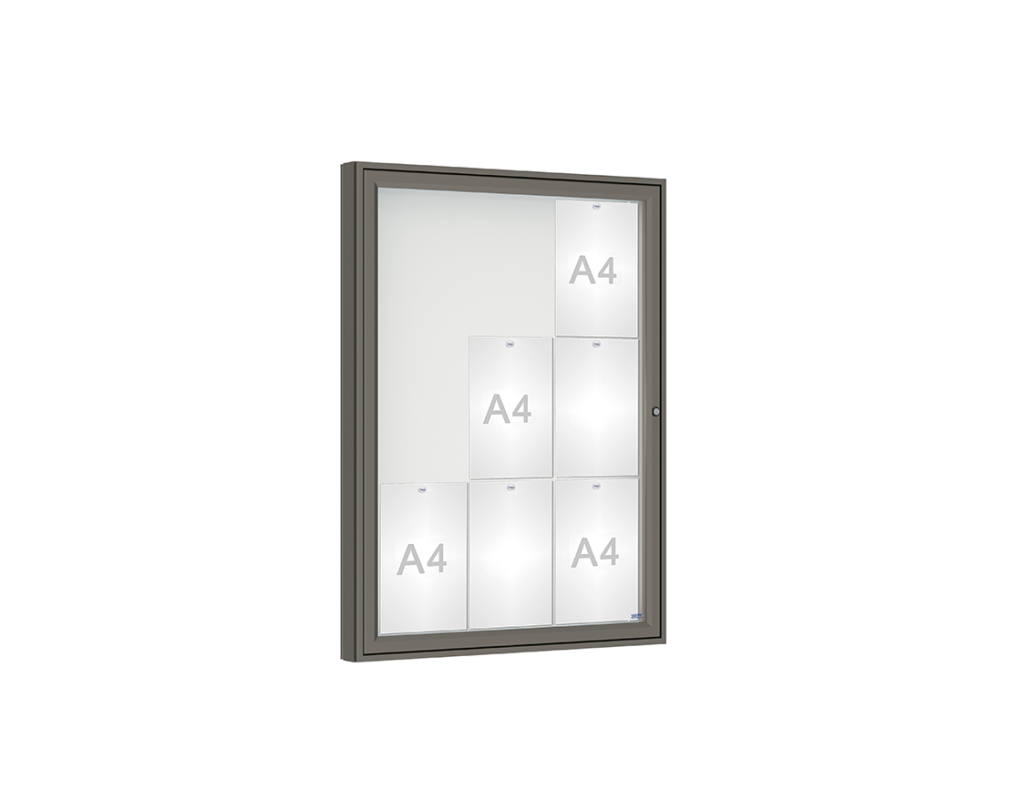 Schaukasten 1000 Farbe:Procity grau|Verglasung:Securitglas|Abmessungen:9 A4 - B 750 x H 1000 mm
