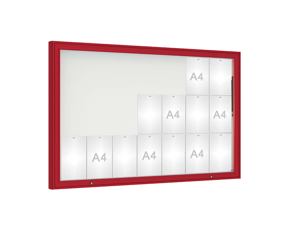 Schaukasten 1000 Farbe:RAL 3004|Verglasung:Plexichocs|Abmessungen:21 A4 - B 1600 x H 1000 mm