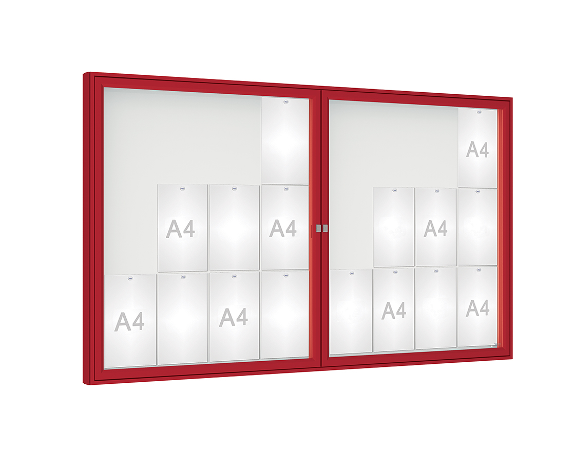 Schaukasten 1000 Farbe:RAL 3004|Verglasung:Plexichocs|Abmessungen:24 A4 – B 1800 x H 1050 mm