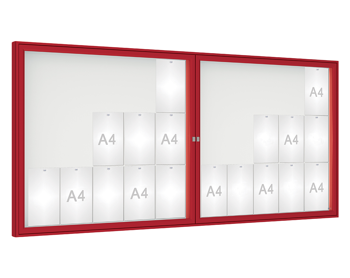 Schaukasten 1000 Farbe:RAL 3004|Verglasung:Plexichocs|Abmessungen:30 A4 - B 2250 x H 1050 mm