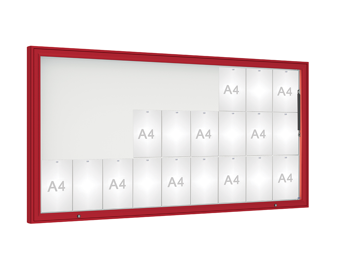 Schaukasten 1000 Farbe:RAL 3004|Verglasung:Securitglas|Abmessungen:27 A4 - B 2010 x H 1000 mm