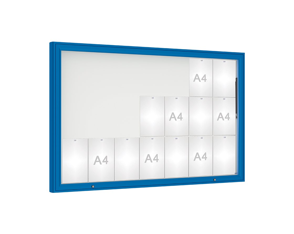 Schaukasten 1000 Farbe:RAL 5010|Verglasung:Plexichocs|Abmessungen:21 A4 - B 1600 x H 1000 mm