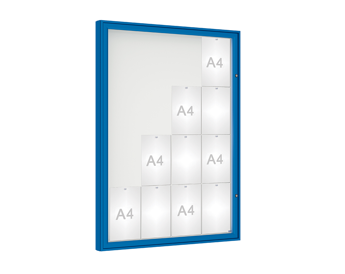 Schaukasten 1000 Farbe:RAL 5010|Verglasung:Securitglas|Abmessungen:16 A4 – B 1000 x H 1350 mm