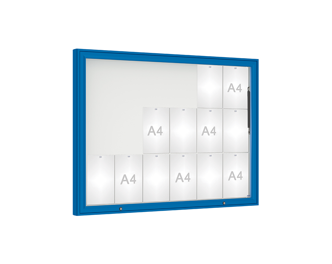 Schaukasten 1000 Farbe:RAL 5010|Verglasung:Securitglas|Abmessungen:18 A4 - B 1350 x H 1000 mm