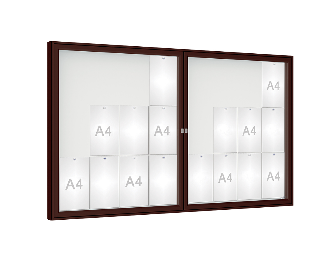 Schaukasten 1000 Farbe:RAL 8017|Verglasung:Plexichocs|Abmessungen:24 A4 – B 1800 x H 1050 mm
