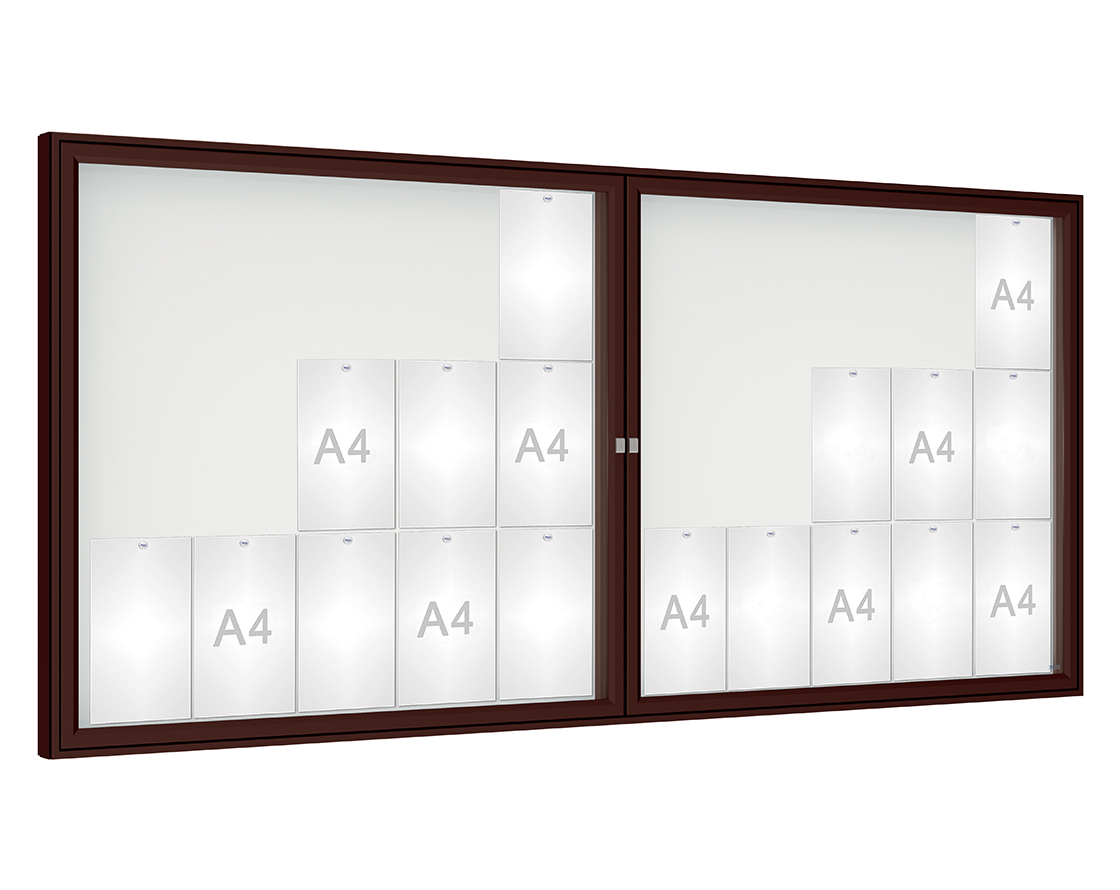 Schaukasten 1000 Farbe:RAL 8017|Verglasung:Plexichocs|Abmessungen:30 A4 - B 2250 x H 1050 mm