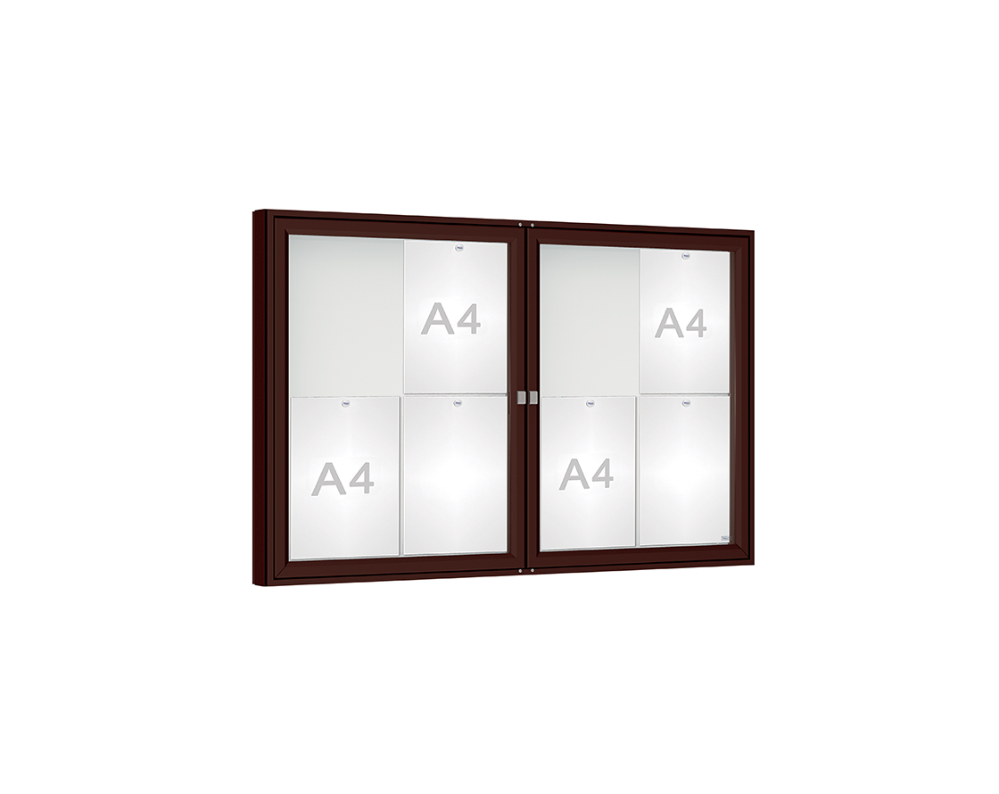 Schaukasten 1000 Farbe:RAL 8017|Verglasung:Plexichocs|Abmessungen:8 A4 - B 1200 x H 750 mm