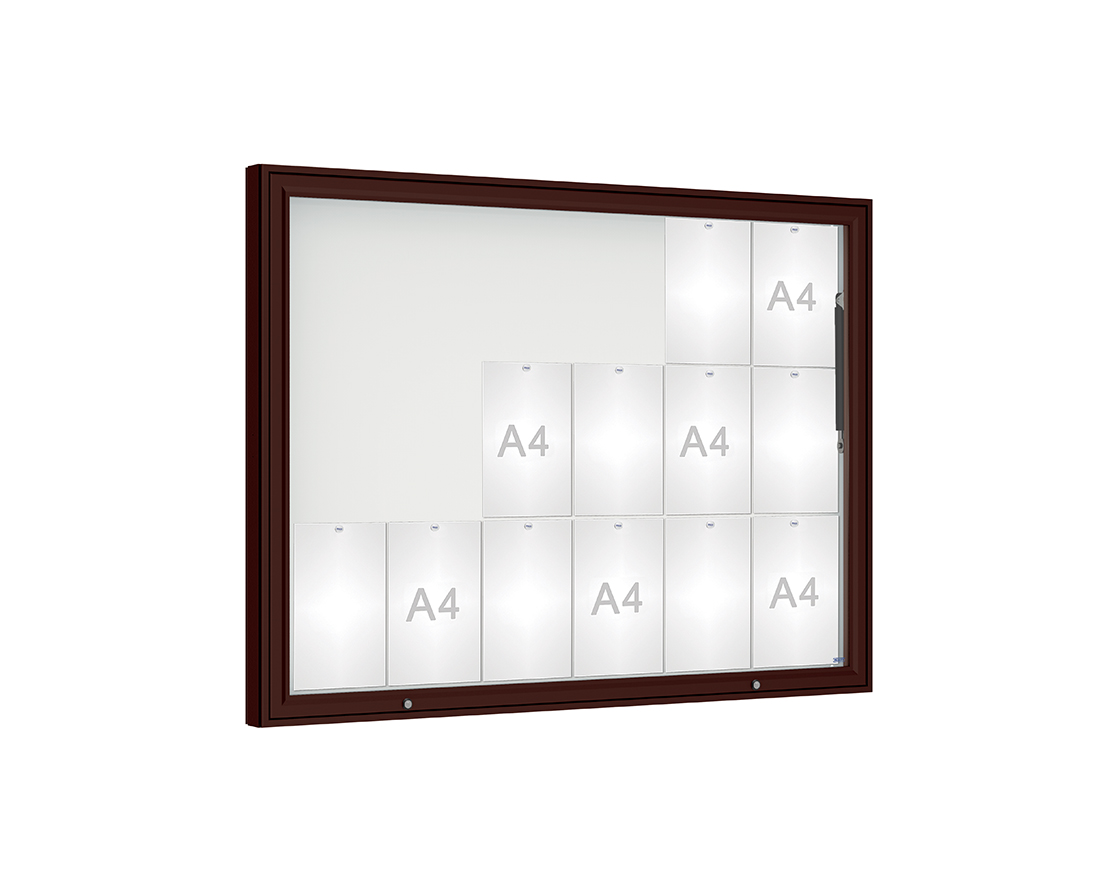 Schaukasten 1000 Farbe:RAL 8017|Verglasung:Securitglas|Abmessungen:18 A4 - B 1350 x H 1000 mm