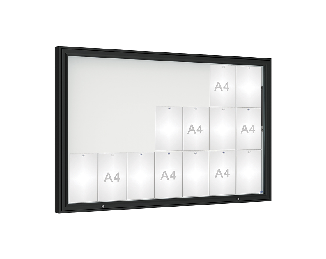 Schaukasten 1000 Farbe:RAL 9005|Verglasung:Securitglas|Abmessungen:21 A4 - B 1600 x H 1000 mm
