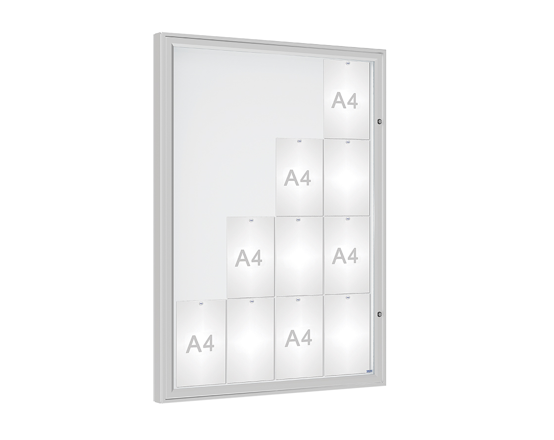 Schaukasten 1000 Farbe:Silber eloxiert|Verglasung:Plexichocs|Abmessungen:16 A4 – B 1000 x H 1350 mm