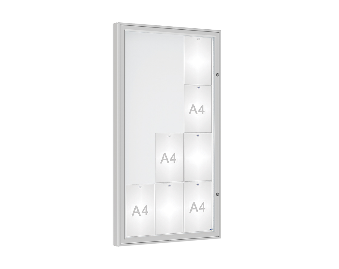 Schaukasten 1000 Farbe:Silber eloxiert|Verglasung:Securitglas|Abmessungen:12 A4 – B 750 x H 1350 mm
