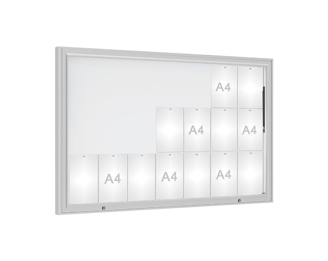 Schaukasten 1000 Farbe:Silber eloxiert|Verglasung:Securitglas|Abmessungen:21 A4 - B 1600 x H 1000 mm