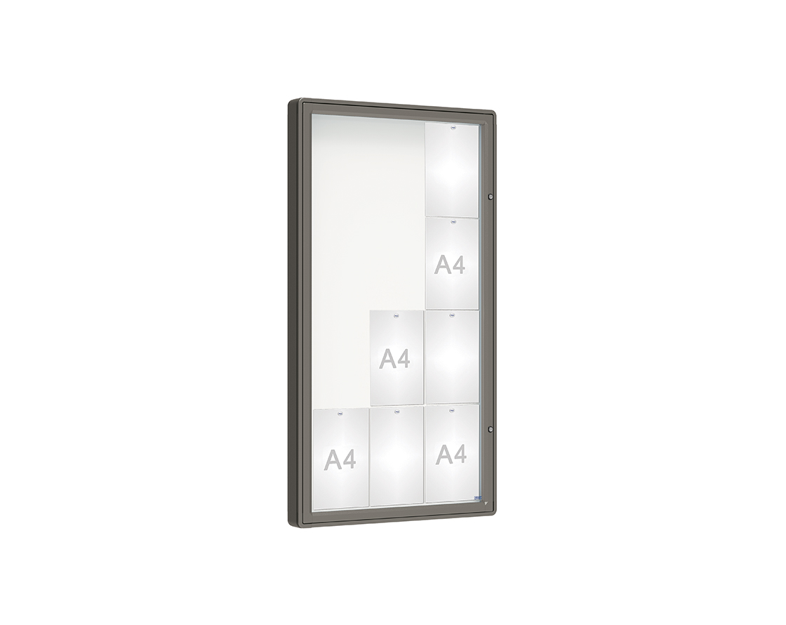 Schaukasten 2000 Farbe:Procity grau|Verglasung:Plexichocs|Abmessungen:12 A4 - B 750 x H 1350 mm