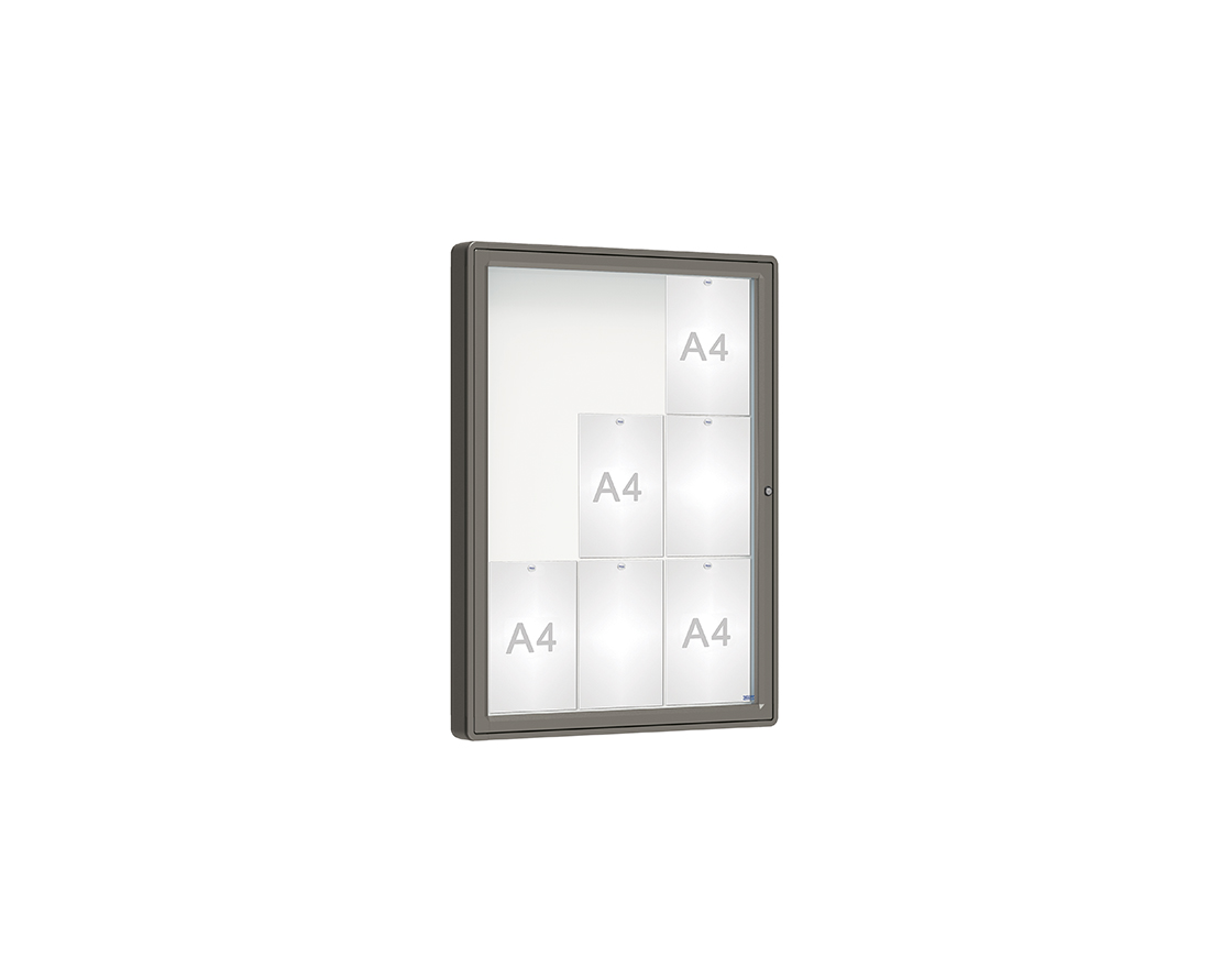 Schaukasten 2000 Farbe:Procity grau|Verglasung:Securitglas|Abmessungen:9 A4 - B 750 x H 1000 mm