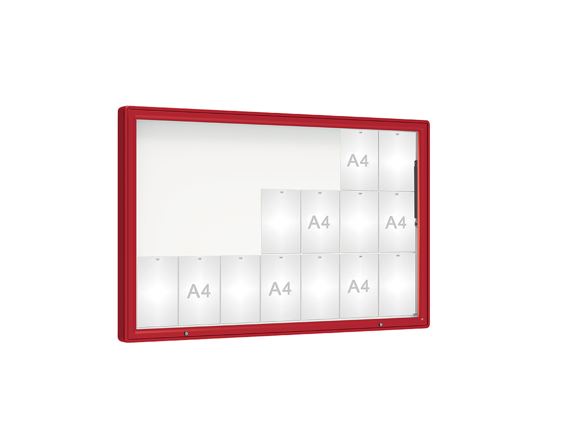 Schaukasten 2000 Farbe:RAL 3004|Verglasung:Plexichocs|Abmessungen:21 A4 - B 1600 x H 1000 mm