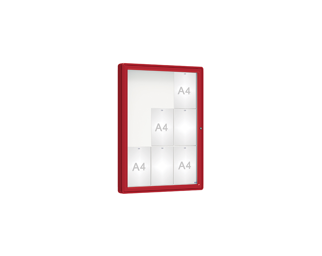 Schaukasten 2000 Farbe:RAL 3004|Verglasung:Plexichocs|Abmessungen:9 A4 - B 750 x H 1000 mm