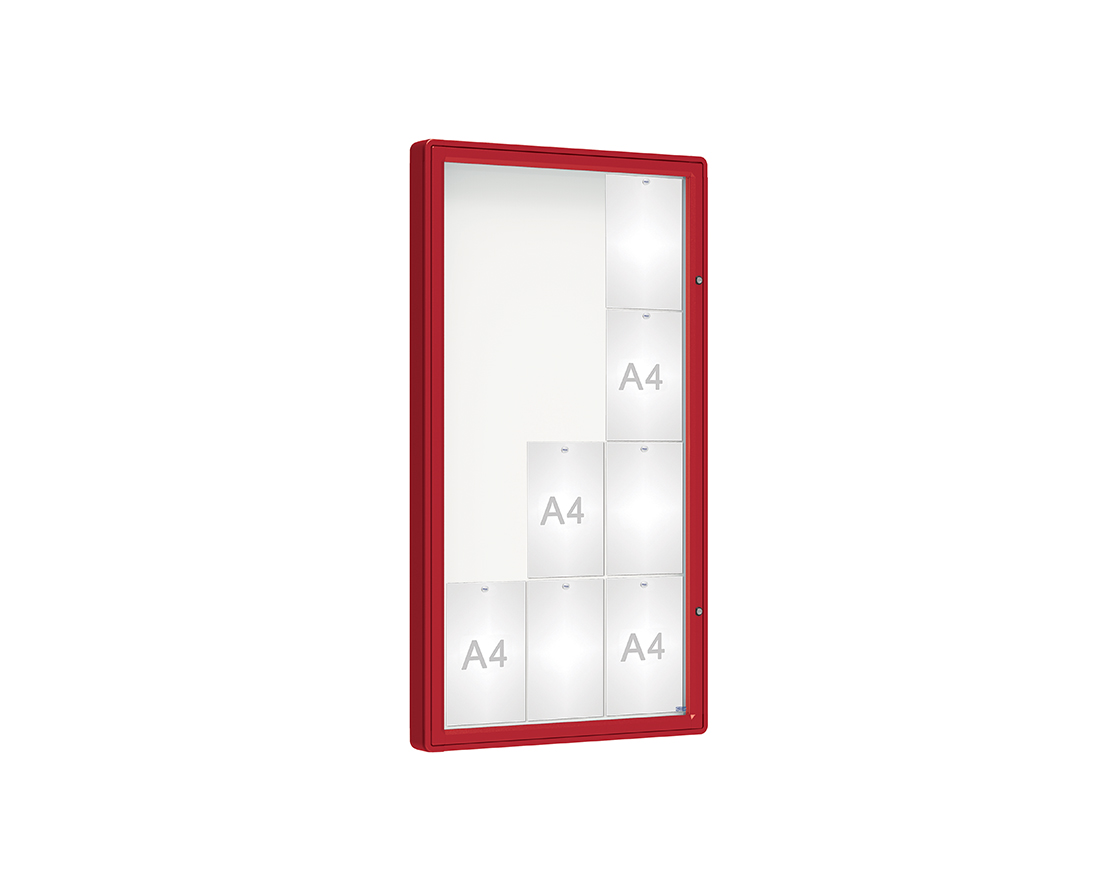 Schaukasten 2000 Farbe:RAL 3004|Verglasung:Securitglas|Abmessungen:12 A4 - B 750 x H 1350 mm
