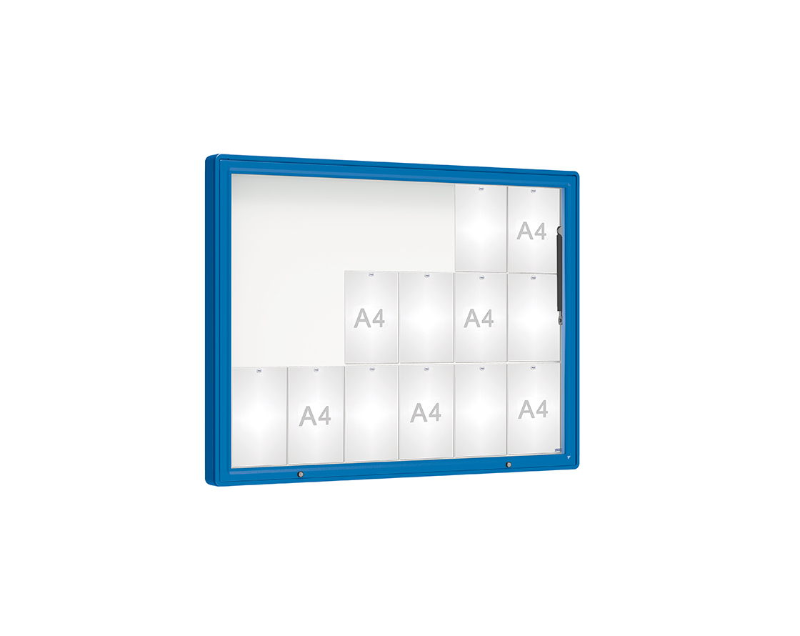 Schaukasten 2000 Farbe:RAL 5010|Verglasung:Securitglas|Abmessungen:18 A4 - B 1350 x H 1000 mm