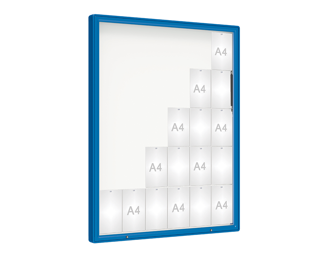 Schaukasten 2000 Farbe:RAL 5010|Verglasung:Securitglas|Abmessungen:30 A4 - B 1350 x H 1710 mm