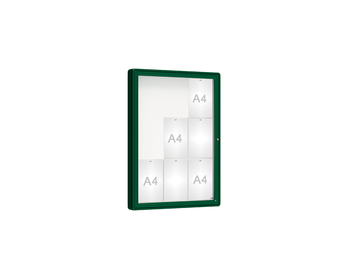 Schaukasten 2000 Farbe:RAL 6005|Verglasung:Plexichocs|Abmessungen:9 A4 - B 750 x H 1000 mm