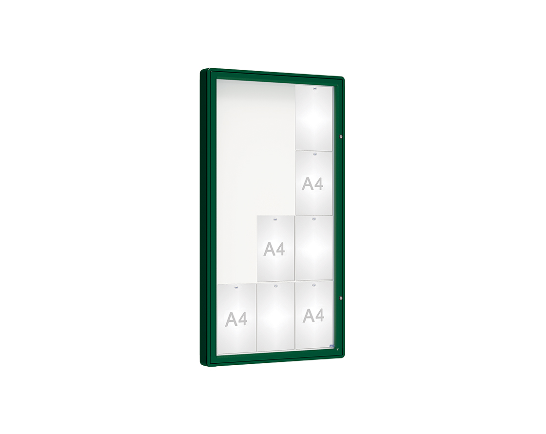 Schaukasten 2000 Farbe:RAL 6005|Verglasung:Securitglas|Abmessungen:12 A4 - B 750 x H 1350 mm