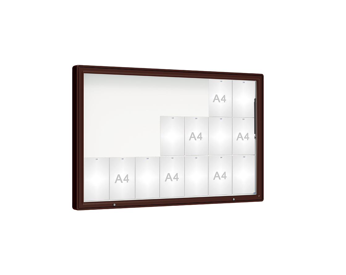 Schaukasten 2000 Farbe:RAL 8017|Verglasung:Plexichocs|Abmessungen:21 A4 - B 1600 x H 1000 mm