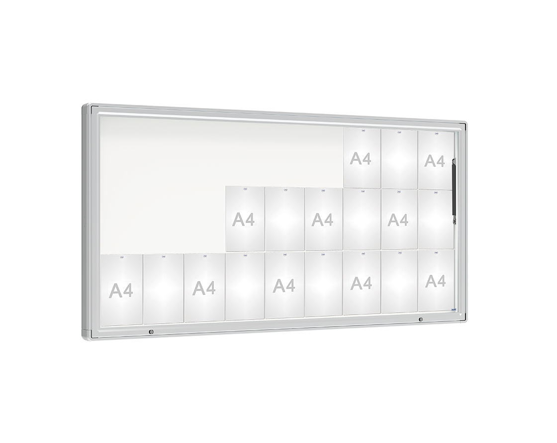 Schaukasten 2000 Farbe:Silber eloxiert|Verglasung:Securitglas|Abmessungen:27 A4 - B 2010 x H 1000 mm