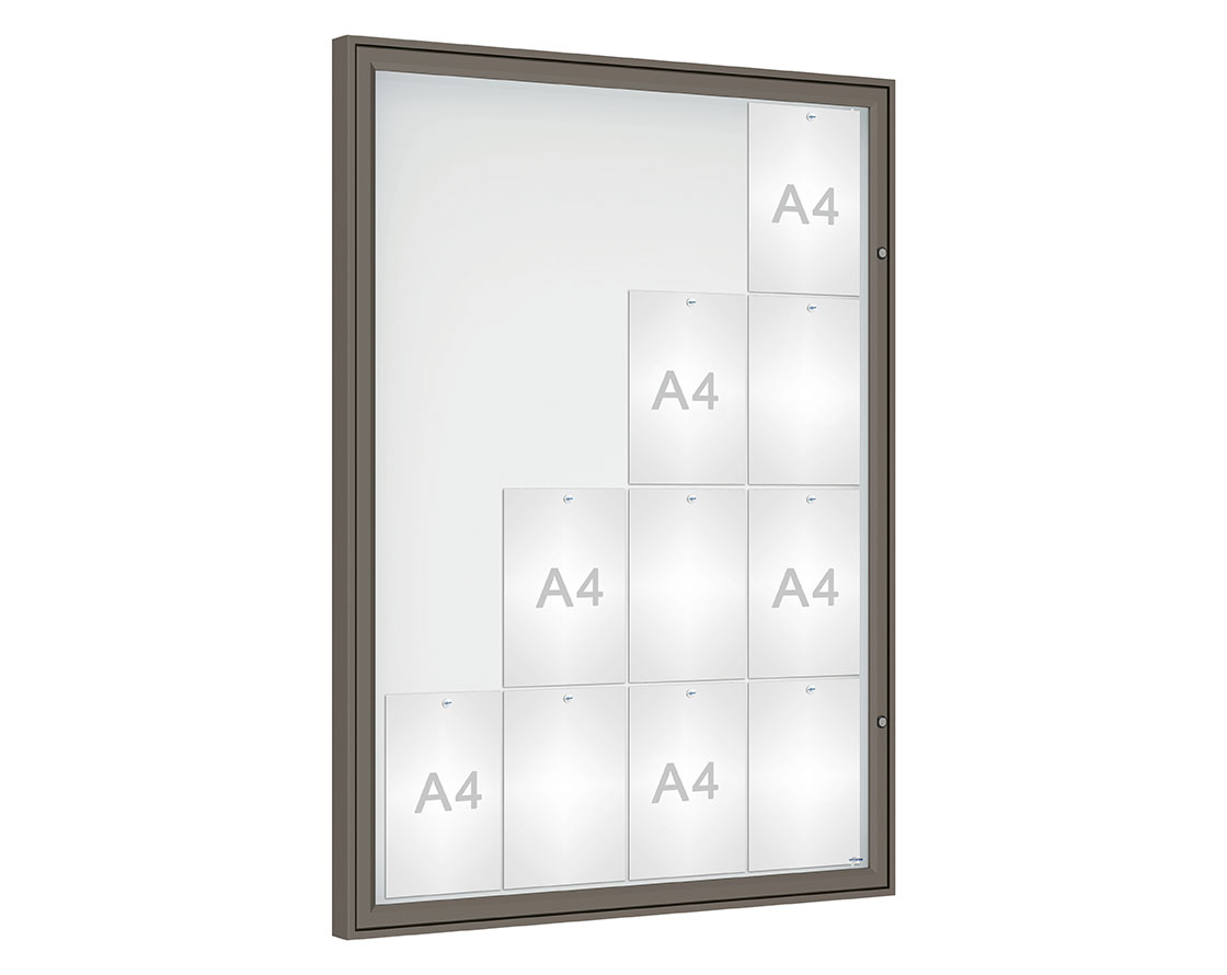 Schaukasten Klassik Farbe:Procity grau|Verglasung:Securitglas|Abmessungen:16 A4 – B 1000 x H 1350 mm