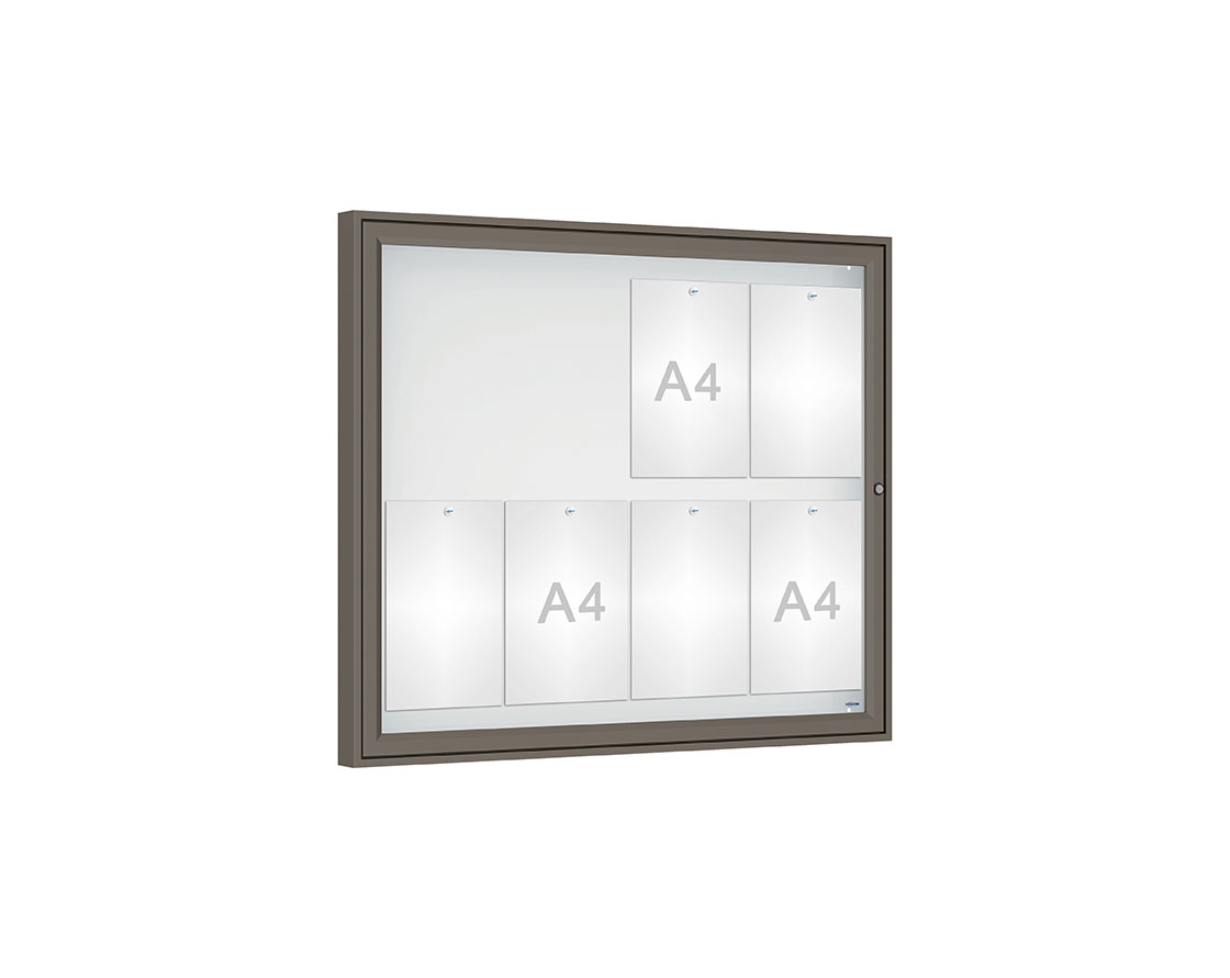 Schaukasten Klassik Farbe:Procity grau|Verglasung:Securitglas|Abmessungen:8 A4 - B 980 x H 830 mm