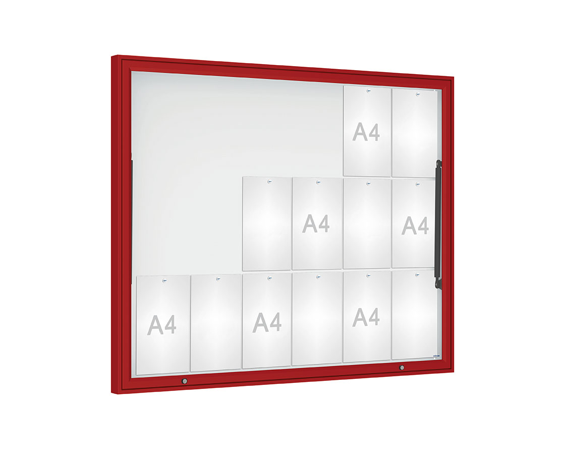 Schaukasten Klassik Farbe:RAL 3004|Verglasung:Plexichocs|Abmessungen:18 A4 - B 1330 x H 1080 mm