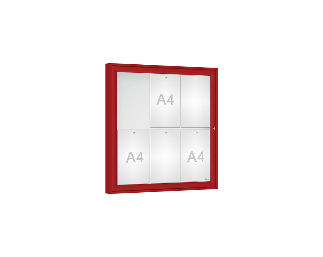 Schaukasten Klassik Farbe:RAL 3004|Verglasung:Plexichocs|Abmessungen:6 A4 - B 750 x H 750 mm