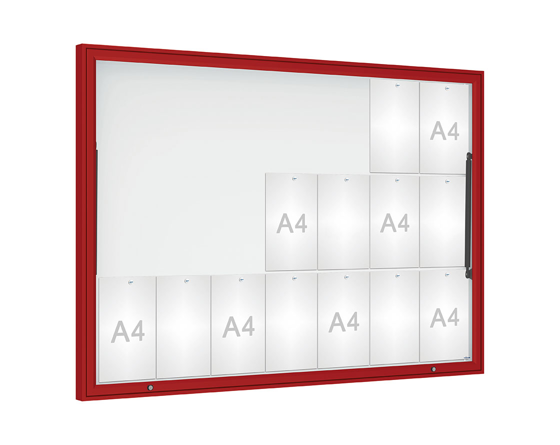 Schaukasten Klassik Farbe:RAL 3004|Verglasung:Securitglas|Abmessungen:21 A4 - B 1600 x H1130 mm