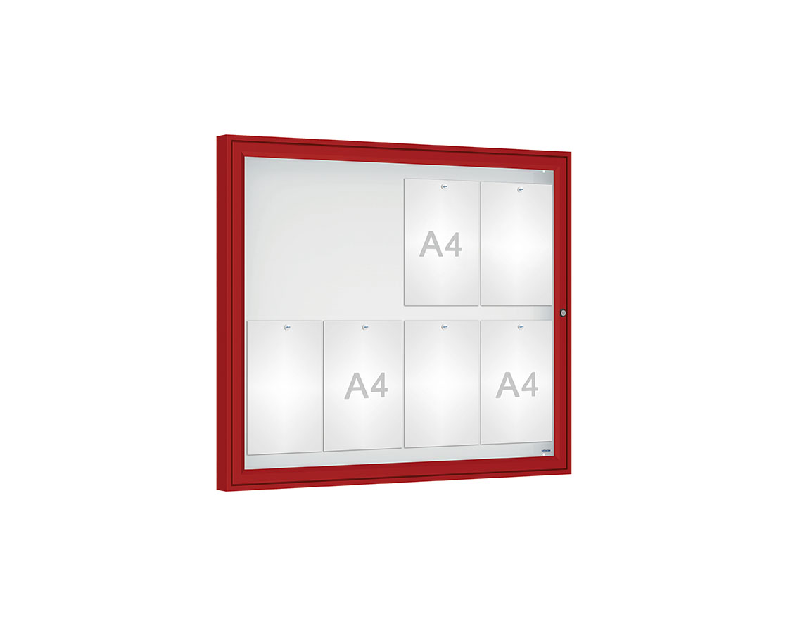 Schaukasten Klassik Farbe:RAL 3004|Verglasung:Securitglas|Abmessungen:8 A4 - B 980 x H 830 mm