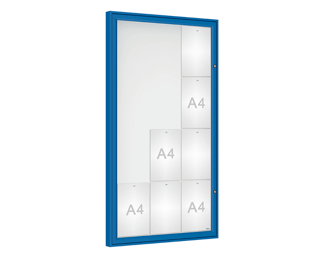 Schaukasten Klassik Farbe:RAL 5010|Verglasung:Plexichocs|Abmessungen:12 A4 – B 750 x H 1350 mm