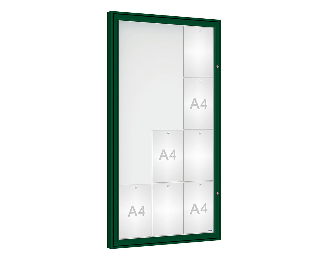 Schaukasten Klassik Farbe:RAL 6005|Verglasung:Plexichocs|Abmessungen:12 A4 – B 750 x H 1350 mm