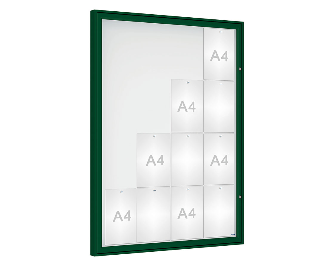 Schaukasten Klassik Farbe:RAL 6005|Verglasung:Plexichocs|Abmessungen:16 A4 – B 1000 x H 1350 mm