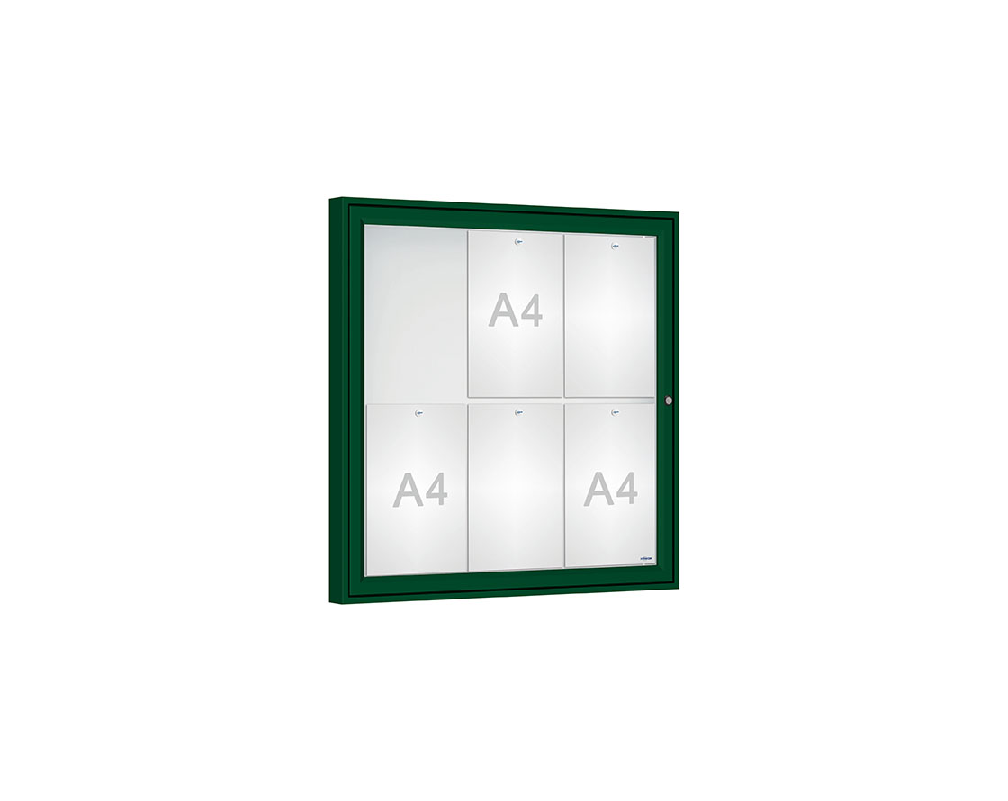 Schaukasten Klassik Farbe:RAL 6005|Verglasung:Plexichocs|Abmessungen:6 A4 - B 750 x H 750 mm