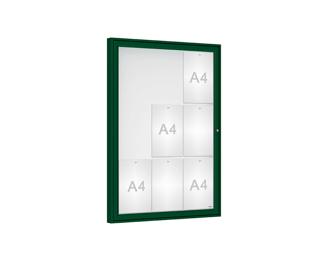 Schaukasten Klassik Farbe:RAL 6005|Verglasung:Plexichocs|Abmessungen:9 A4 - B 750 x H 1050 mm