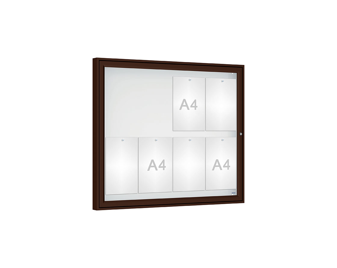 Schaukasten Klassik Farbe:RAL 8017|Verglasung:Plexichocs|Abmessungen:8 A4 - B 980 x H 830 mm