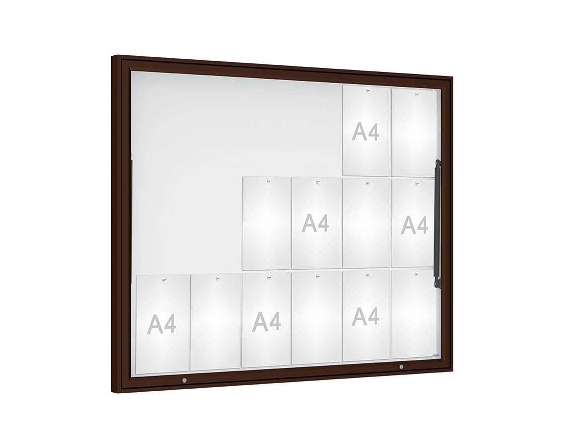 Schaukasten Klassik Farbe:RAL 8017|Verglasung:Securitglas|Abmessungen:18 A4 - B 1330 x H 1080 mm