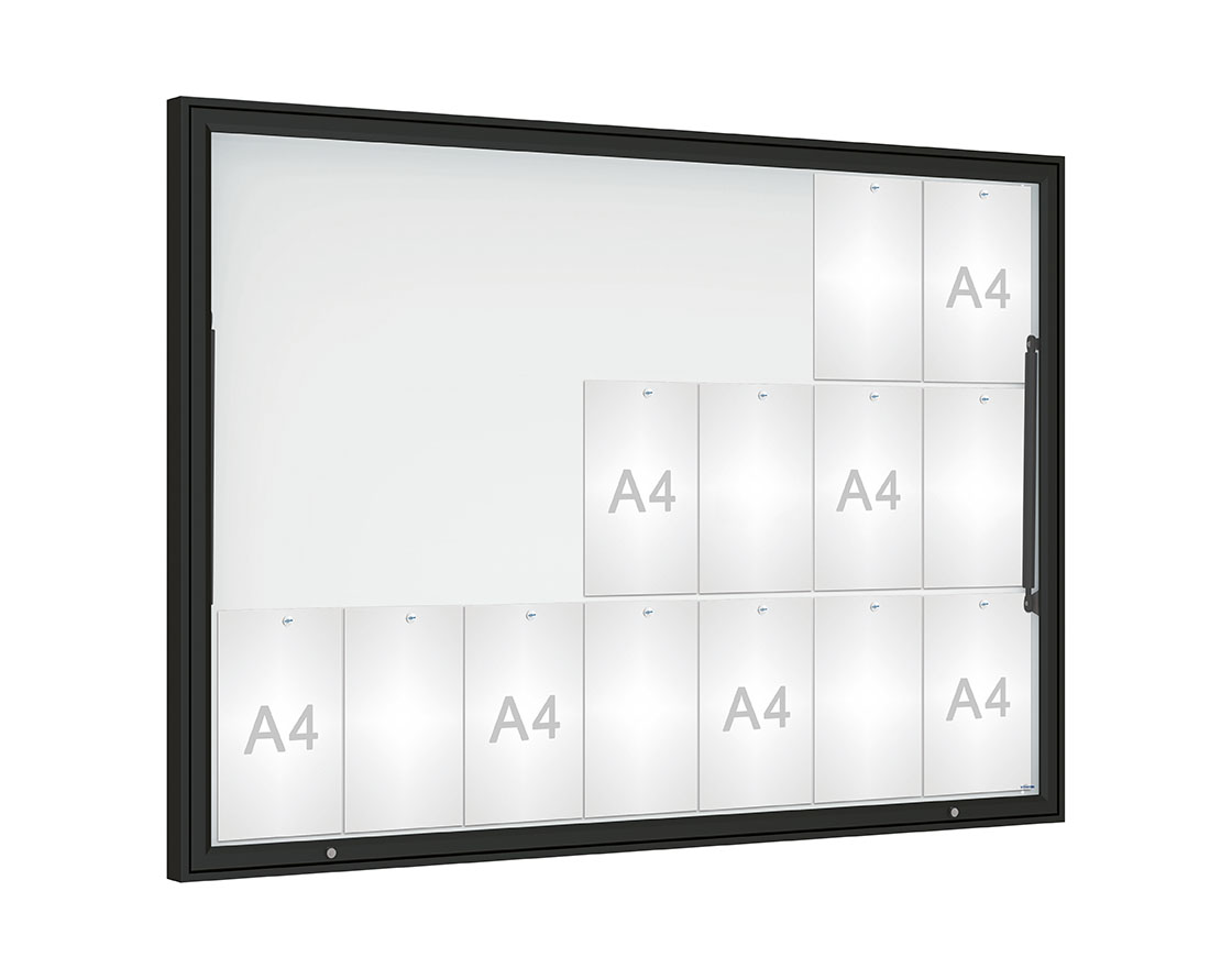Schaukasten Klassik Farbe:RAL 9005|Verglasung:Plexichocs|Abmessungen:21 A4 - B 1600 x H1130 mm