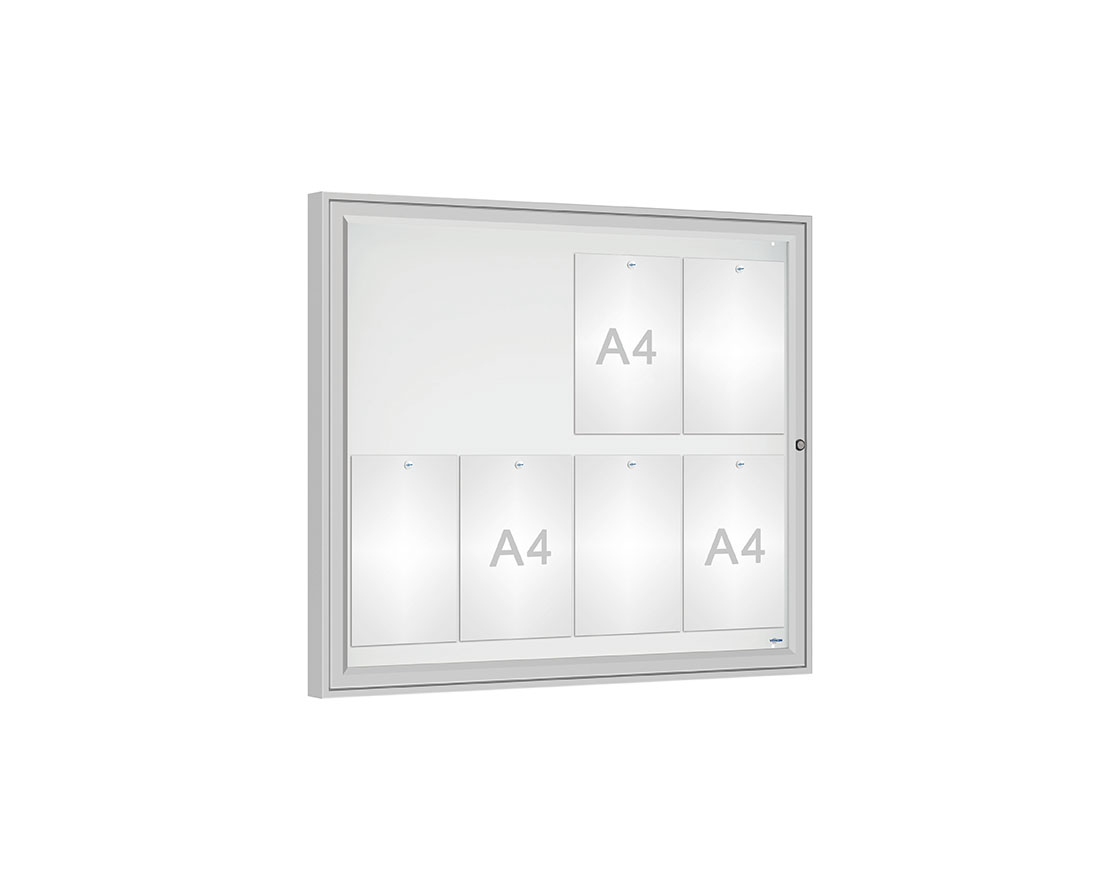 Schaukasten Klassik Farbe:Silber eloxiert|Verglasung:Plexichocs|Abmessungen:8 A4 - B 980 x H 830 mm