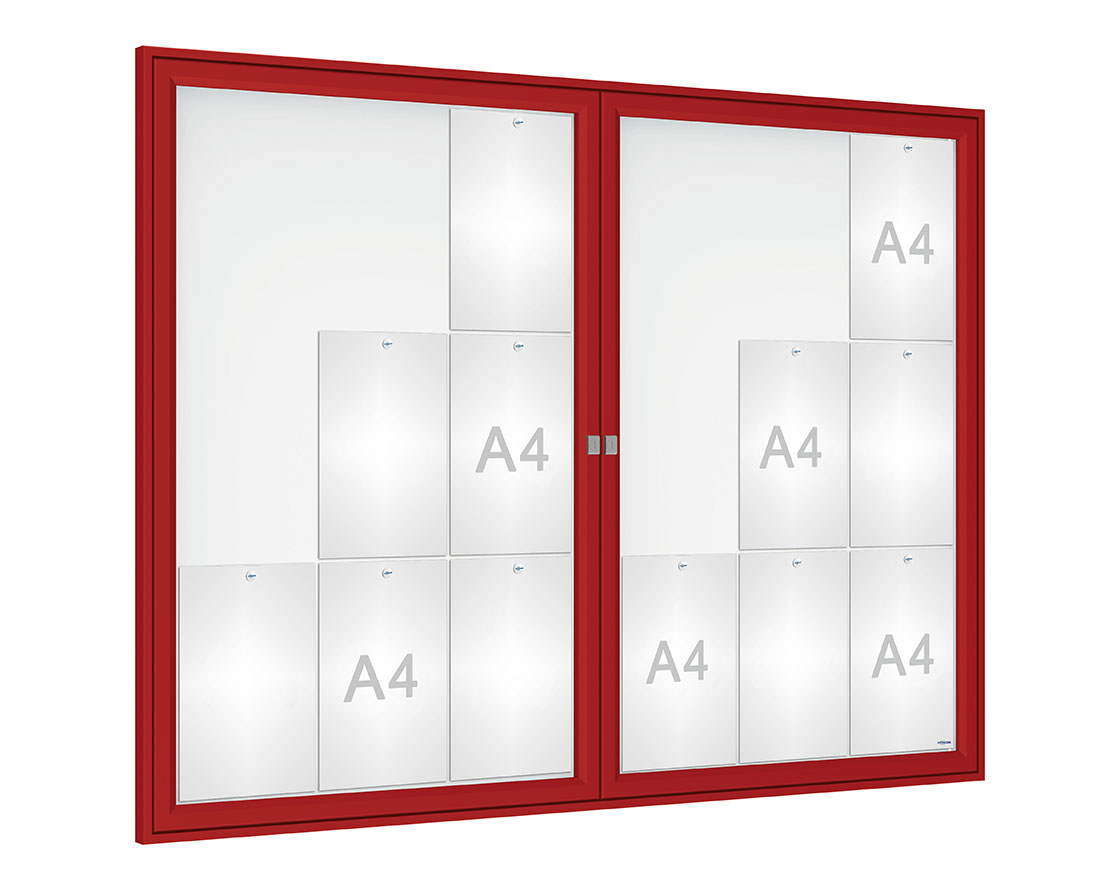 Schaukasten Tradition Farbe:RAL 3004|Abmessungen:18 A4 - B 1400 x H 1050 mm